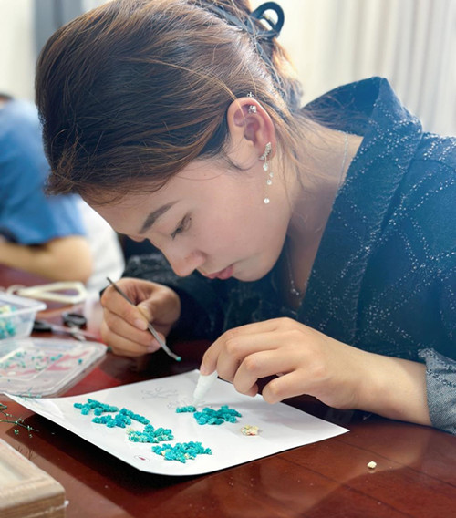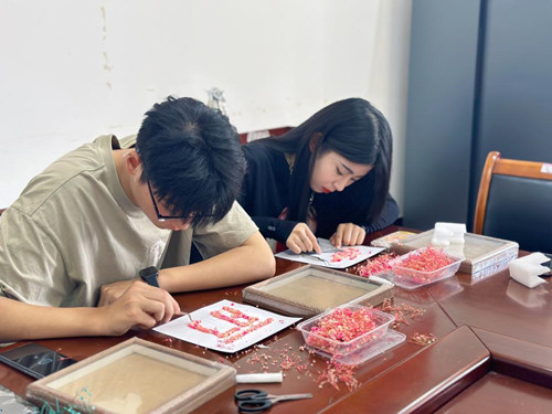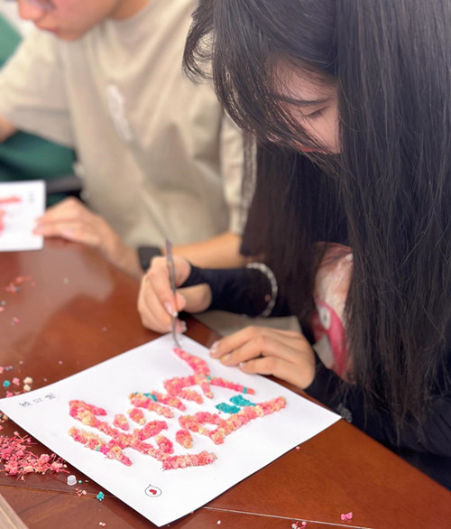 活动伊始,工商管理学院心理专项老师王婷详细地向同学们讲解了干花相框的制作程序和注意细节,同学们都听得十分认真。之后,大家学以致用,充分发挥自己想象,小心翼翼地摆弄着手中的花瓣,用灵巧的双手、丰富的色彩搭配、巧妙的形状组合,然后利用胶水将各式各样的花束粘贴在画框中,让原本空空如也的相框锦簇,形成一幅幅独具匠心又饱含深意的作品。看着“新鲜出炉”的作品,同学们脸上都洋溢着满满的幸福感和成就感。
