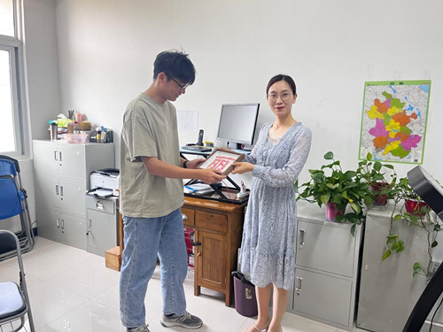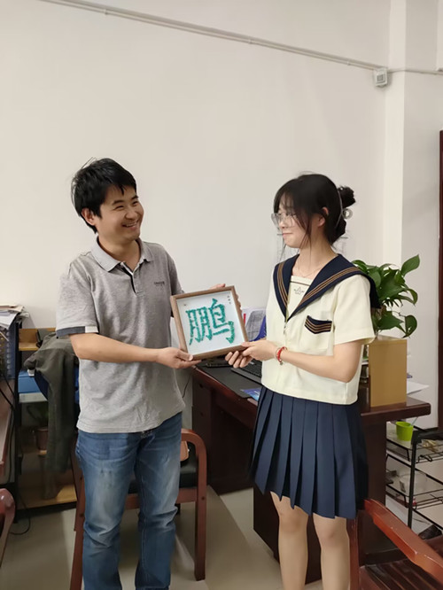 制作完成后,工商管理学院同学们走进办公室,为辛勤耕耘的老师送上定制相框,向她们表达对老师真切的感激之情,通过此次幸福传递活动,让学生们学会传递真爱、懂得感恩,增进师生情谊。