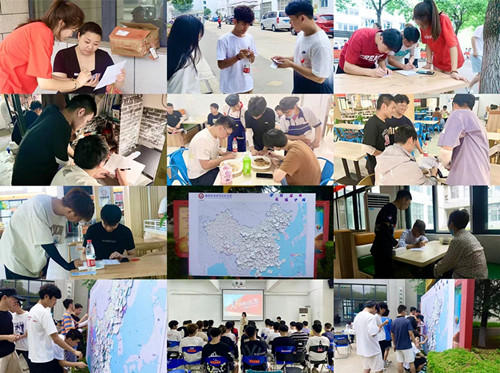 活动设有“奔跑吧”“最强大脑”“极速前进”“极限挑战”四个环节。来自2022级不同班级的40名同学组成五支队伍,率先完成挑战的队伍将获得最终胜利。第一关“奔跑吧”,每队队员需相互配合,共同完成“八人九足”“光明行动”“手足情”三项挑战。第二关“最强大脑”,每队队员需分工协作,分别完成“记忆大师”“拼图还原”“人体字谜”三项挑战。第三关“极速前进”,每队队员需集体抵达校园指定地点完成指定动作并合影留念。第四关“极限挑战”,每队队员需随机邀请路人在邀请卡上写下各自家乡县级行政单位的名称,并合力将收集的邀请卡钉在中国地图的相应位置。本次户外素质拓展涵盖了体能的考验、智慧的比拼、团队的对抗、终极的挑战。同学们在活动中增进了感情,拉近了距离,建立起友谊,在实践中体会团队协作的力量,感受乐观心态的感染力。