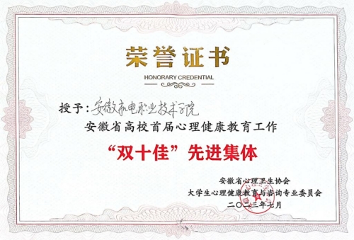 【机电荣耀】学校获评安徽省高校首届心理健康教育工作“双十佳”先进集体