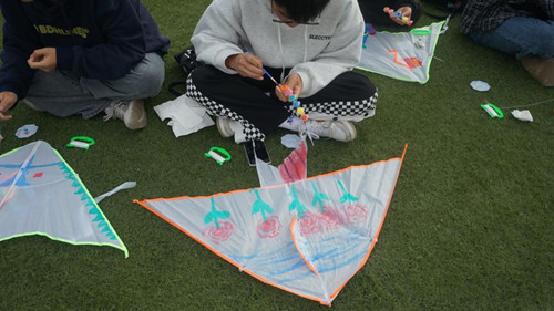 风筝活动包括手绘风筝和放飞风筝两个部分。同学们早早来到了活动地点,迫不及待地领取材料,根据主题自主构思,限时三十分钟绘制空白纸鸢,传达爱心、真情和对未来的美好祝福,以全新的方式感受、传承与发扬传统文化,各式各样的风筝在大家的画笔下脱颖而出。绘制结束后,学生们就迫不及待的系上风筝线,扬起手中的风筝,在空中宛若游龙舞于九天,时而飘摇回旋、时而直上蓝天,蔚蓝天空中,以白云为背景舞动着色彩缤纷的风筝。地面上,绽开的是学生一张张喜悦的笑脸,整场活动欢声笑语、热闹非凡。