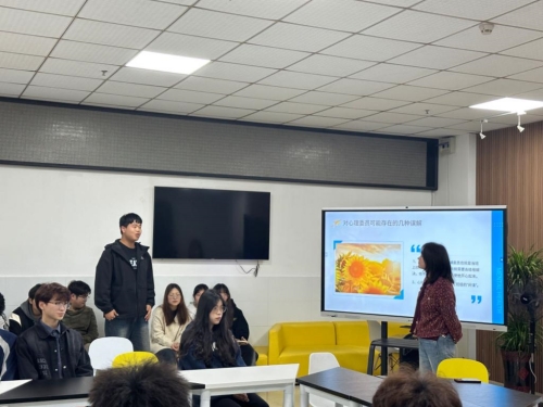 会上,茅环环从心理健康知识、心理委员角色定位和职责、需要关注的群体、心理问题表现等四个方面给学生进行了专题培训,其培训既有案例分析、系统知识学习又有交流探讨。接着,茅环环对各位心理骨干入校以来的工作给予充分肯定,强调心理委员在普及心理健康知识、组织心理健康教育活动及有效开展心理危机干预的重要作用。同时她还强调该岗位是一个细心活,良心活,心理骨干需要走出误区,争当班级的“传声员”、老师的“排雷兵”、同学的“支持者”。