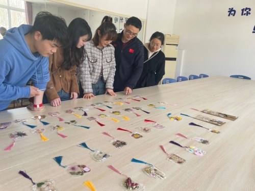 活动中,同学们充分发挥想象力和创造力,搭配色彩多样的花瓣与叶子,并封存在透明书签里,形成独一无二的精美图案。在大家的巧手下,一张张书签变得生动起来,一幅幅春日美景被定格在书签里。小小书签,尽显乾坤,给人以无限的诗情画意和想象。活动结束后,评委老师们根据构图、色彩等评比标准评选出优秀作品并给予奖励。