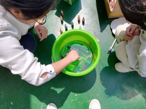 活动中,茅环环给同学们讲解了漆器的历史发展与漂漆扇的制作技巧,展示多种不同的漂漆扇花式手法。随即大家迅速进入状态,跃跃欲试。做好准备工作后,在心理助理万欣怡的引导下,大家饶有兴致地选择自己喜欢的颜色,纷纷创作起来。以漆为笔,以水为墨,美轮美奂。活动现场氛围温馨快乐,漆扇的诞生就像开盲盒,充满奇趣!