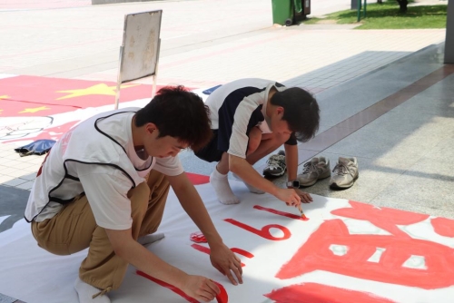 “爱我中华”环节让活动达到了高潮。所有队员汇聚一堂,共同手绘了一幅宽9米、长10米的“我和我的祖国”巨幅画作,以此向伟大祖国即将到来的75周年华诞献上最诚挚的祝福,每一笔每一划都凝聚着同学们对祖国深沉的爱与自豪。活动尾声,全体参与者在自己亲手绘制的巨幅画前留下了珍贵的合影,定格了这一刻向祖国母亲深情告白的青春与激情。
