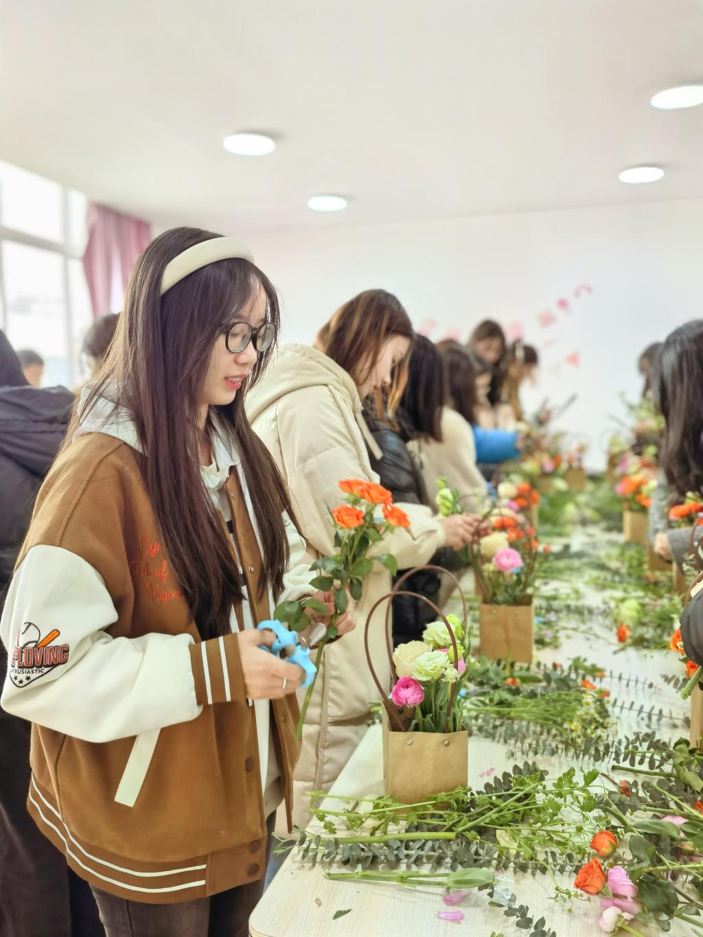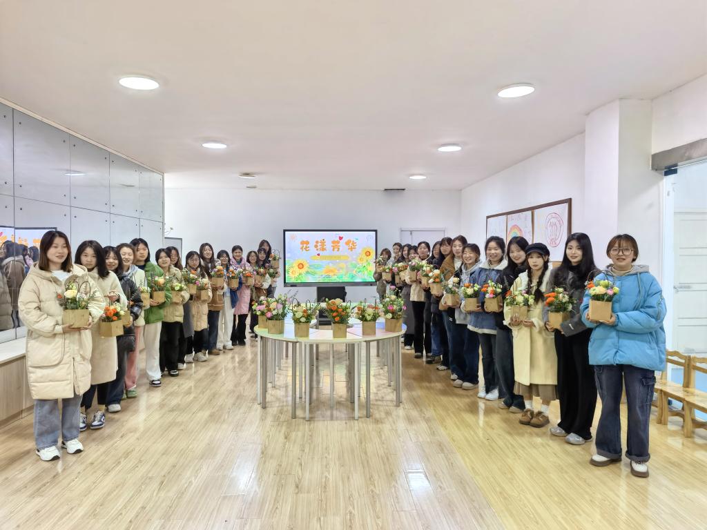 为进一步贯彻落实“五育并举”,发挥美育温润心灵的作用,提升学生美育素养,3月6日下午,学校大学生心理健康教育中心举办“以美润心 花漾芳华”女生节主题插花活动,二级心理辅导站老师和30名女同学参加活动。