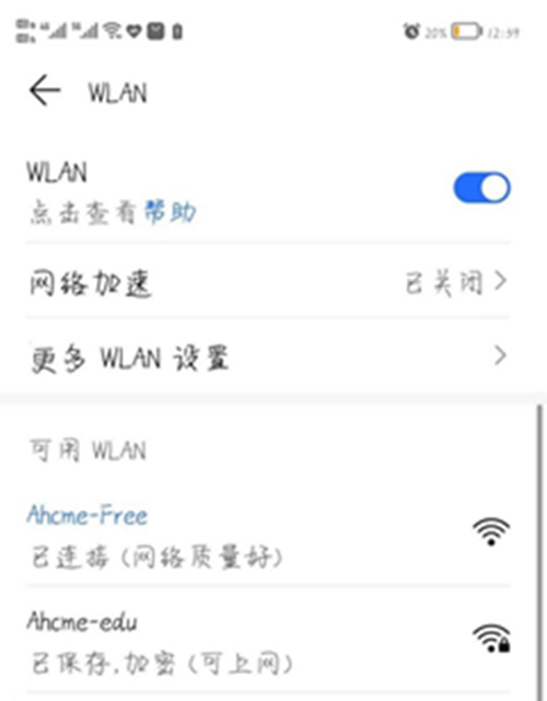 第一步:关掉移动数据,连接校园无线网(Ahcme-Free或Ahcme-edu)。