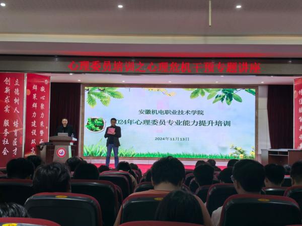 为加强心理健康教育朋辈队伍建设,进一步提升心理委员朋辈互助能力,11月13日下午,学校在明德楼一楼报告厅举办2024年心理委员专业能力培训之心理危机干预专题讲座。讲座邀请安徽工程大学管理科学与工程学院党委书记、大学生心理健康教育咨询中心总督导王军教授担任主讲。200余名心理委员和老师参加此次活动。讲座由学校心理中心主任王东华主持。