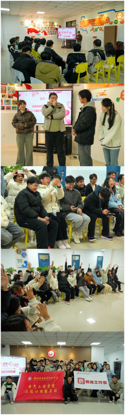 为进一步贯彻落实《全面加强和改进新时代学生心理健康工作专项行动计划(2023—2025 年)》,引导学生树立正确的恋爱观,培育理性平和的健康心态,2024年12月,电气工程学院二级心理辅导站联合“微光”辅导员工作室开展第三季“怦然心动”恋爱成长主题系列心理团辅活动。
