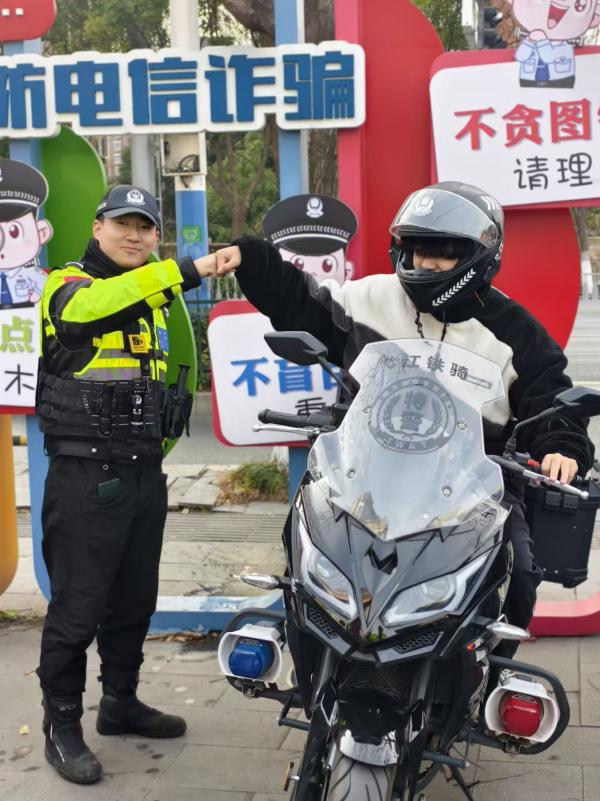 演出在一首激昂的合唱《我和我的祖国》中温暖启航,同学们用嘹亮的歌声表达了对祖国的深情厚谊和对安全守护者的崇高敬意。随后,舞蹈《全部都是你》以活力四射的舞姿展现了当代大学生的蓬勃朝气,赢得了现场观众的阵阵喝彩。最后特巡警队员和同学合作的一首《万疆》更是将演出推向高潮。演出间隙,学生们和警员进行了互动交流,分享了学习心得与生活趣事,民警也向同学们宣传反诈知识,体验了常用警用装备使用。现场气氛热烈而融洽。警官们纷纷表示,这样的活动让他们感受到了来自社会的理解和支持,是对他们工作最大的鼓励和肯定。
