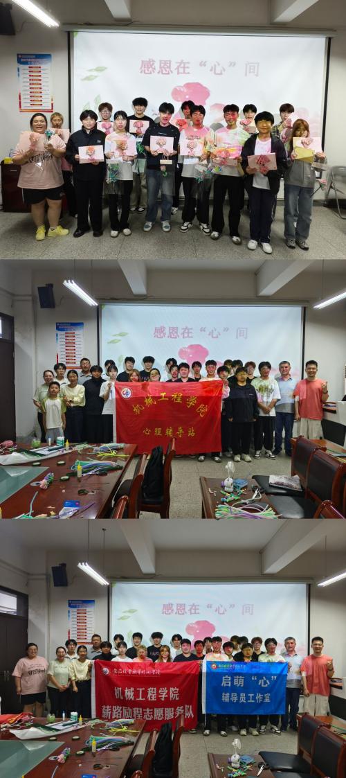 为将资助感恩教育与心理育人工作相结合,以感恩实际行动滋养学生心灵家园,在母亲节到来之际,机械工程学院二级心理辅导站联合学院团委、资助专项和“启萌心”辅导员工作室,举办了一场 “感恩在心间”母亲节礼物制作活动。学院党总支副书记杨磊出席,专职辅导员邹传娟、严伟、韩俊丽和学院各年级学生代表参加。活动由学院心理专项辅导员肖红雨主持。
