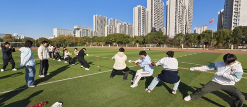 在冬日明媚的阳光中,本次活动拉开序幕。所有活动参与者被分为四个小组,大家快速熟悉彼此,在阵阵爽朗的笑声中,大家齐心协力参与集体跳绳、滚铁环迎面接力、“毛毛虫”赛跑等活动。每一位小组成员依次参与其中,大家把安全、团结和友谊放在并列第一的位置,在你追我赶、奋力前进中,大家从不太熟悉走向熟悉,从不太协调走向整齐划一。活动氛围其乐融融。