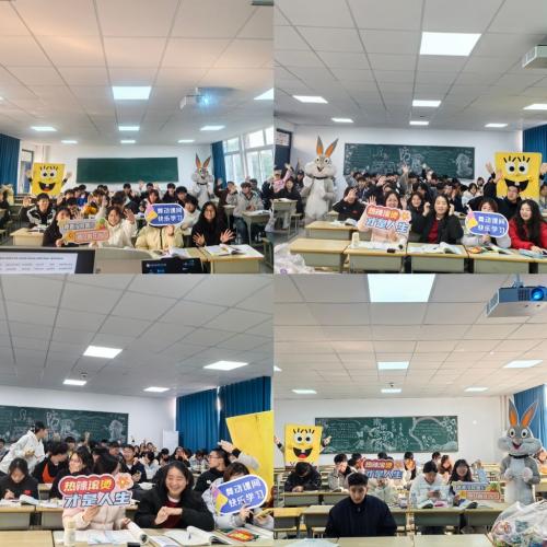 活动筹备阶段,林建媛带领团队紧扣学生课堂学习后的心理放松核心需求,细致打磨活动方案。物资筹备环节,学院定制了承载暖心心理寄语的专属书签,搭配传递关怀的暖心零食,让每一份物资都成为心理关怀的具象载体;内容设计上,团队精心筛选《冬日暖歌》《阳光彩虹小白马》等积极向上的曲目编排舞蹈,以轻快旋律搭配简单易学的动作降低参与门槛,确保心理疏导效果真正落地。当清脆的下课铃声响起,“小兔”“海绵宝宝”等萌趣造型玩偶突然现身教室,瞬间点燃现场氛围,热烈的掌声与欢呼声此起彼伏。在玩偶与志愿者的热情带领下,同学们纷纷起身加入舞蹈队列,肢体的舒展有效带动了心理的放松。活动尾声分发的暖心物资,更让这份愉悦感持续升温,不少同学用手机定格下这一温暖瞬间,整个课堂内都洋溢着欢声笑语。