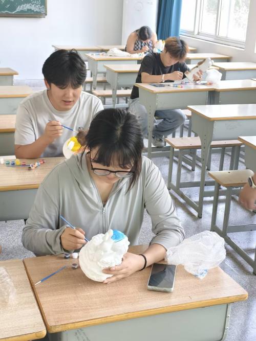 活动现场气氛专注而愉悦。同学们纷纷拿起画笔,沉浸于为素白石膏娃娃赋予色彩与生命的过程中。画笔的沙沙声与同学们专注的神情交织,伴随着不时传来的轻松笑声,共同营造出温馨和谐的减压空间。参与者们纷纷表示,在全身心投入创作的这段时间里,期末复习带来的紧张感得到了有效释放,身心获得了宝贵的放松。